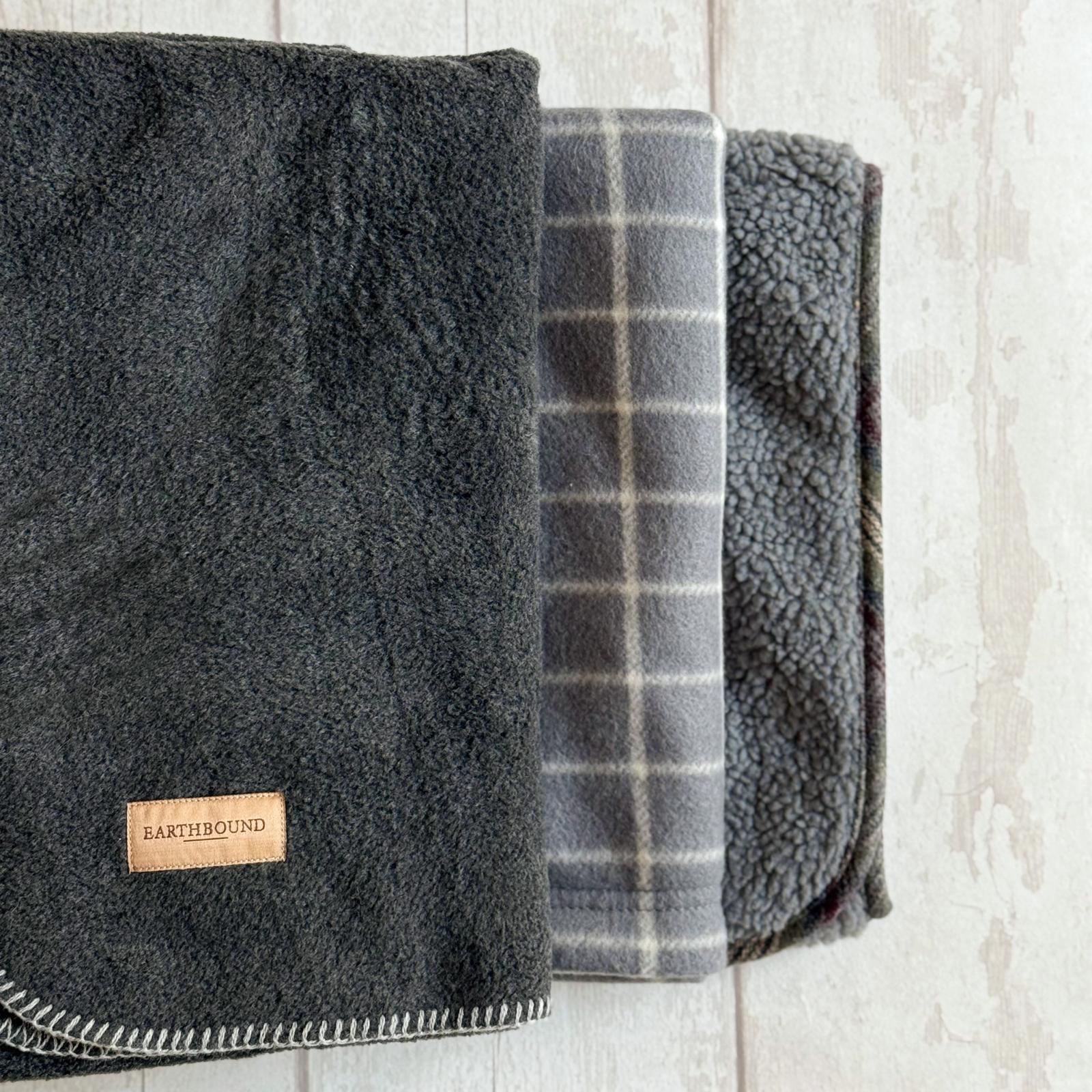 Fleece Blanket with Contrast Stitch ,Window Pane Check ,Thick Fleece with Bone Appliqué ,3 Blanket Bundle – Shades of Grey |