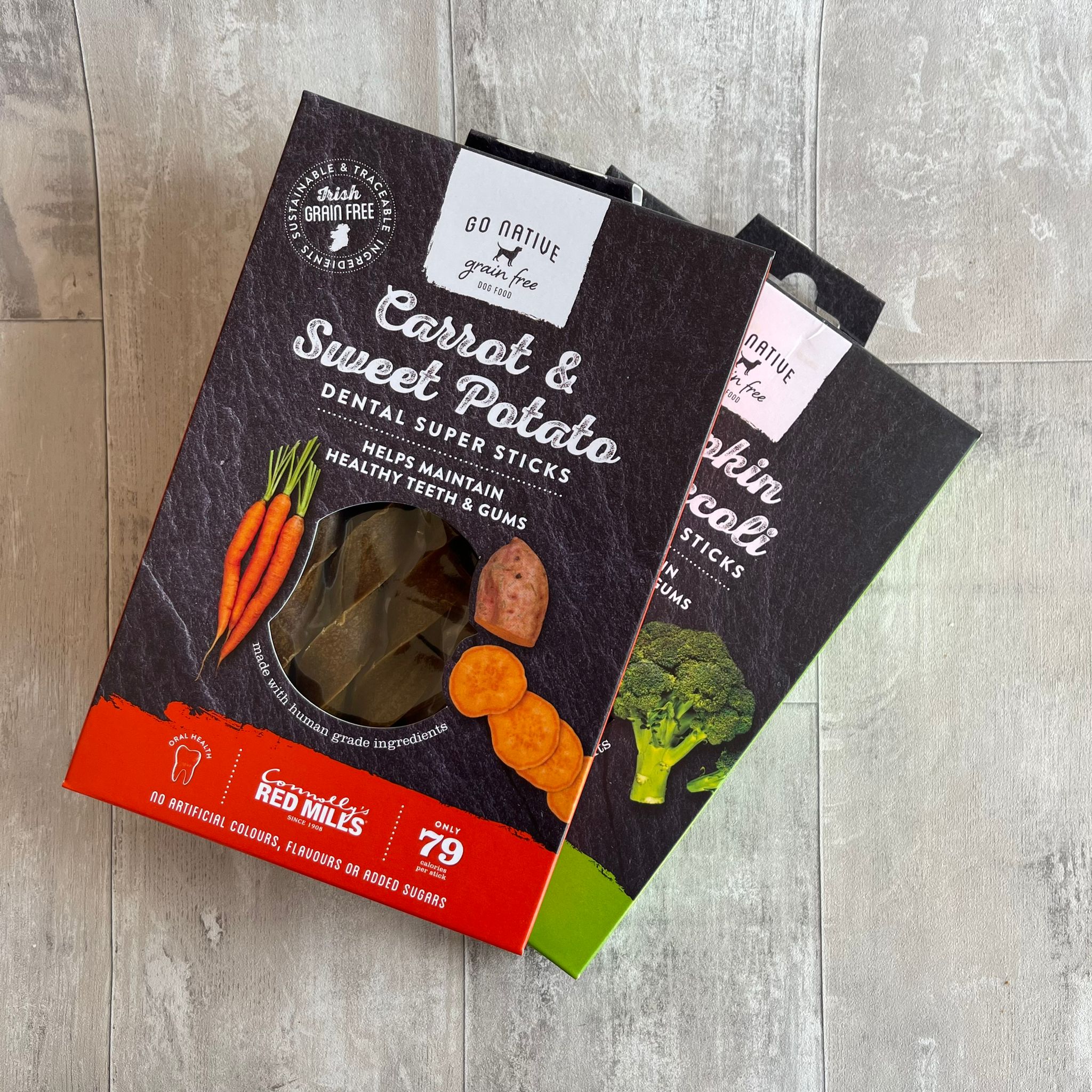 Some dental sticks can be very high in sugar and calories, these ‘Super Sticks’ are a great healthy alternative and very popular with our own pups. They are grain free, with high quality ‘human grade’ ingredients and only 79 calories each. Completely natural and very tasty they come in two flavours; Broccoli and Pumpkin and Sweet Potato and Carrot, we recommend them as a great bed time snack to help to keep your dog’s teeth clean.