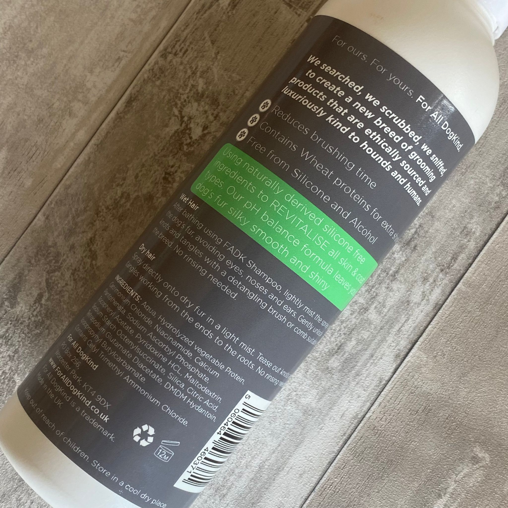 This gentle hypoallergenic leave in conditioner makes combing and brushing a breeze. Free from silicone and alcohol this natural, light mist can be sprayed directly into the fur to gently unlock knots and tangles. With added wheat protein for aded shine the spray will leave your dogs fur silky smooth and shiny.