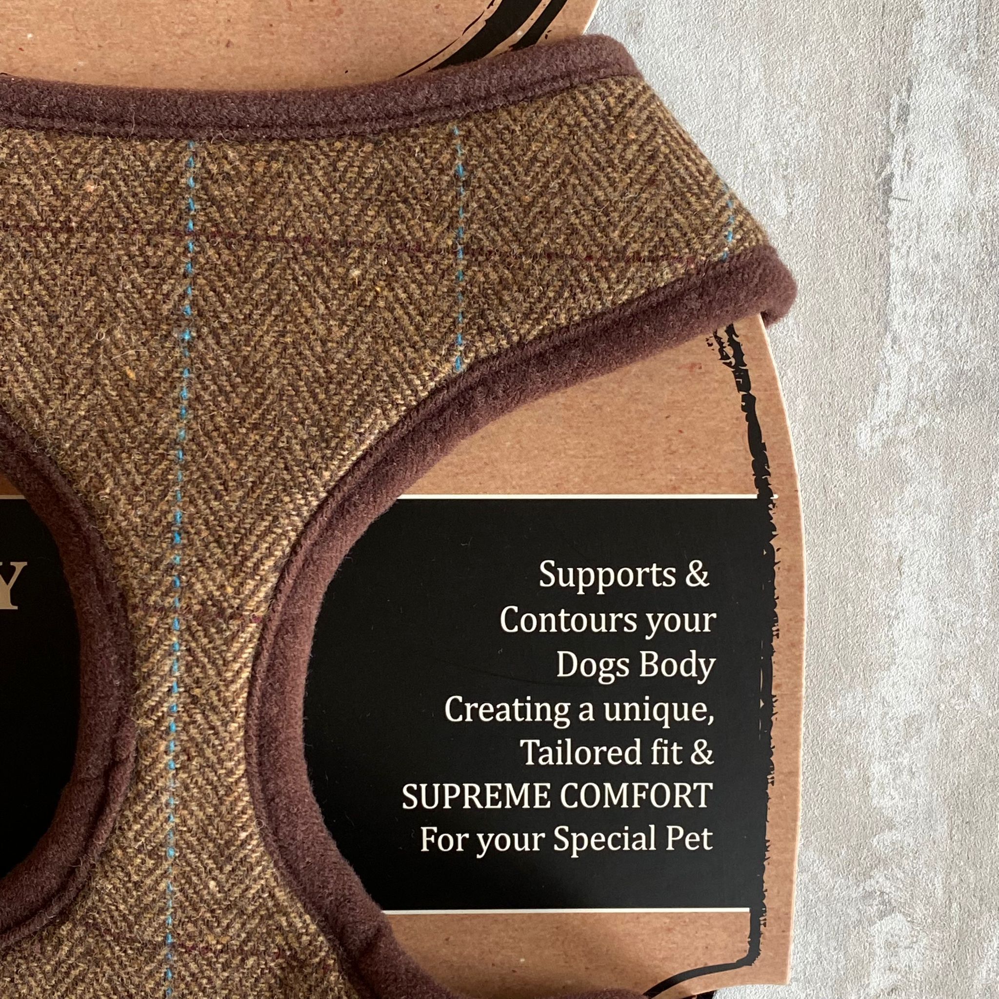A stylish and comfortable alternative to a standard collar, this luxurious tweed harness is filled with soft memory foam for a secure yet gentle fit. Ideal for dogs who pull on the lead or tend to slip out of collars, this harness offers added support while reducing pressure on the neck.