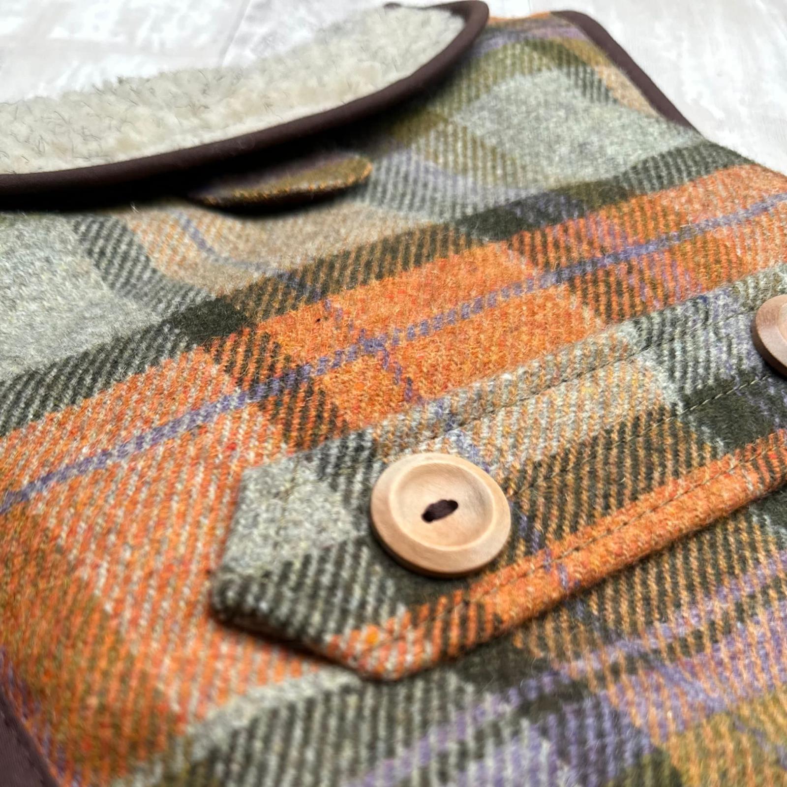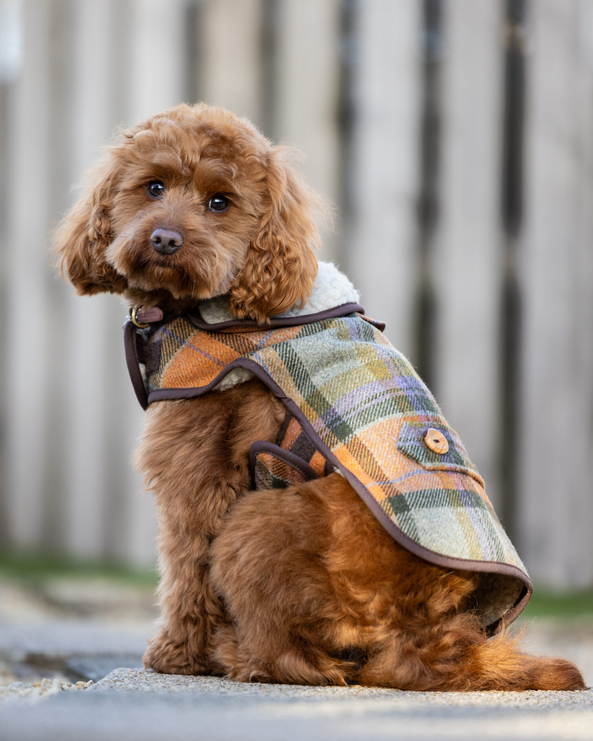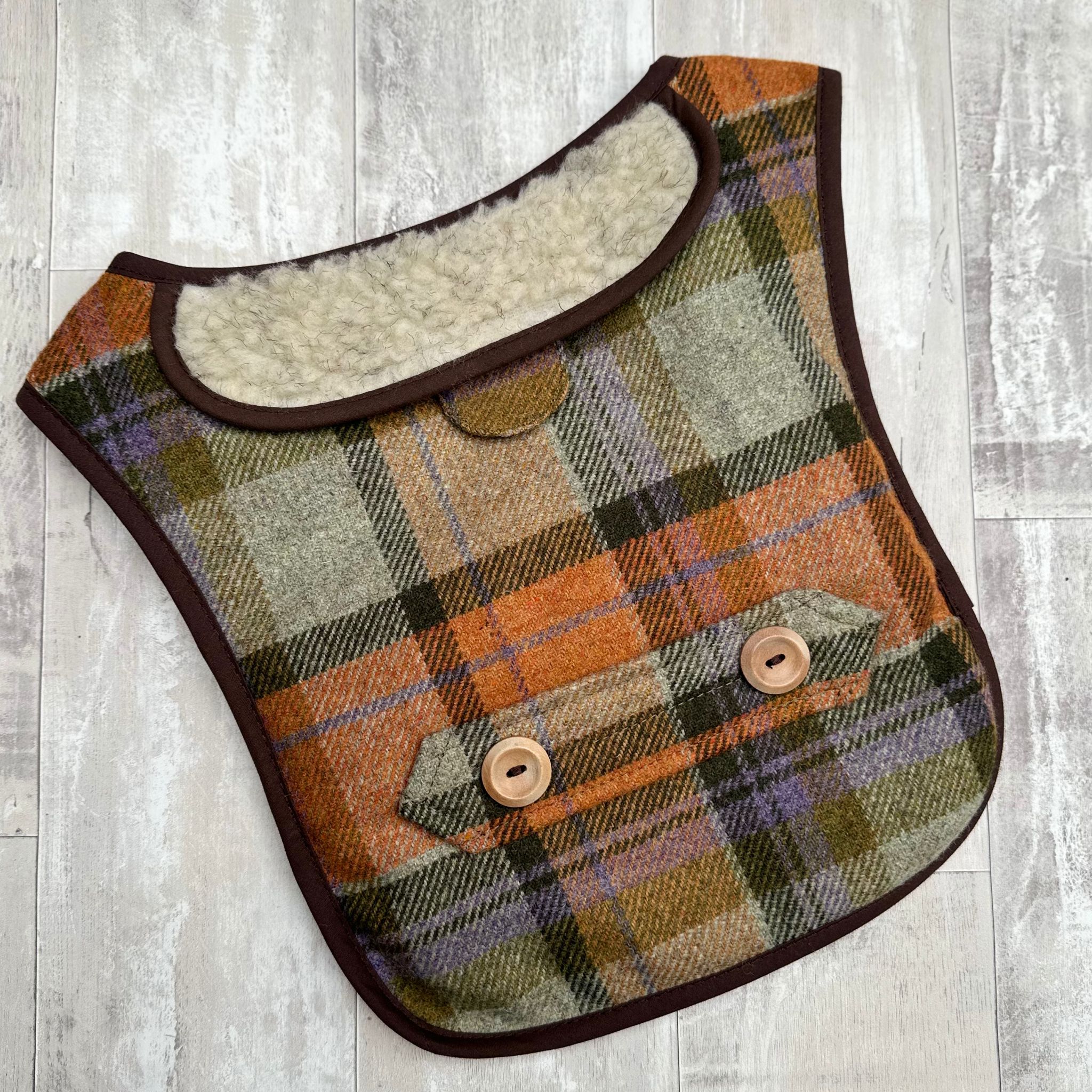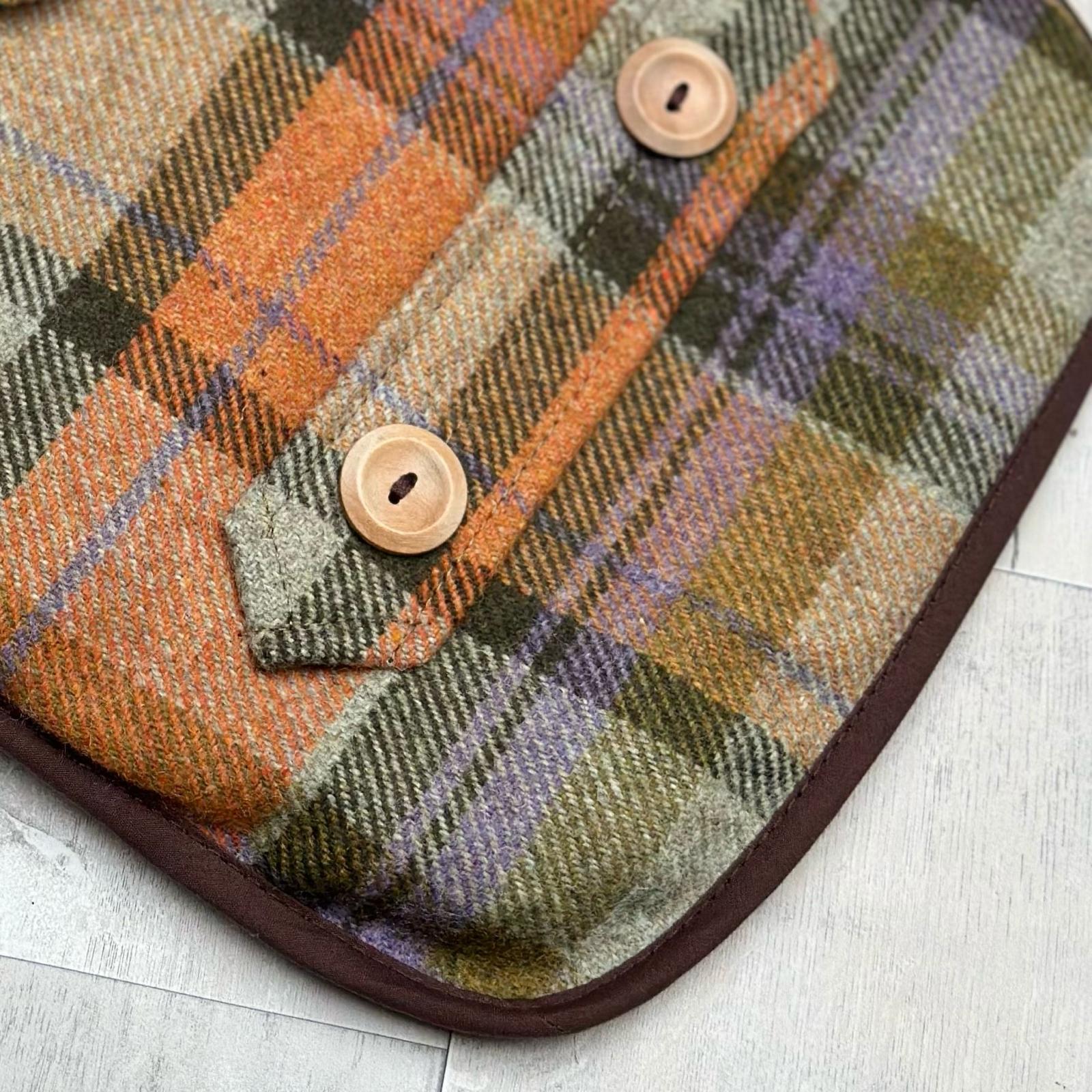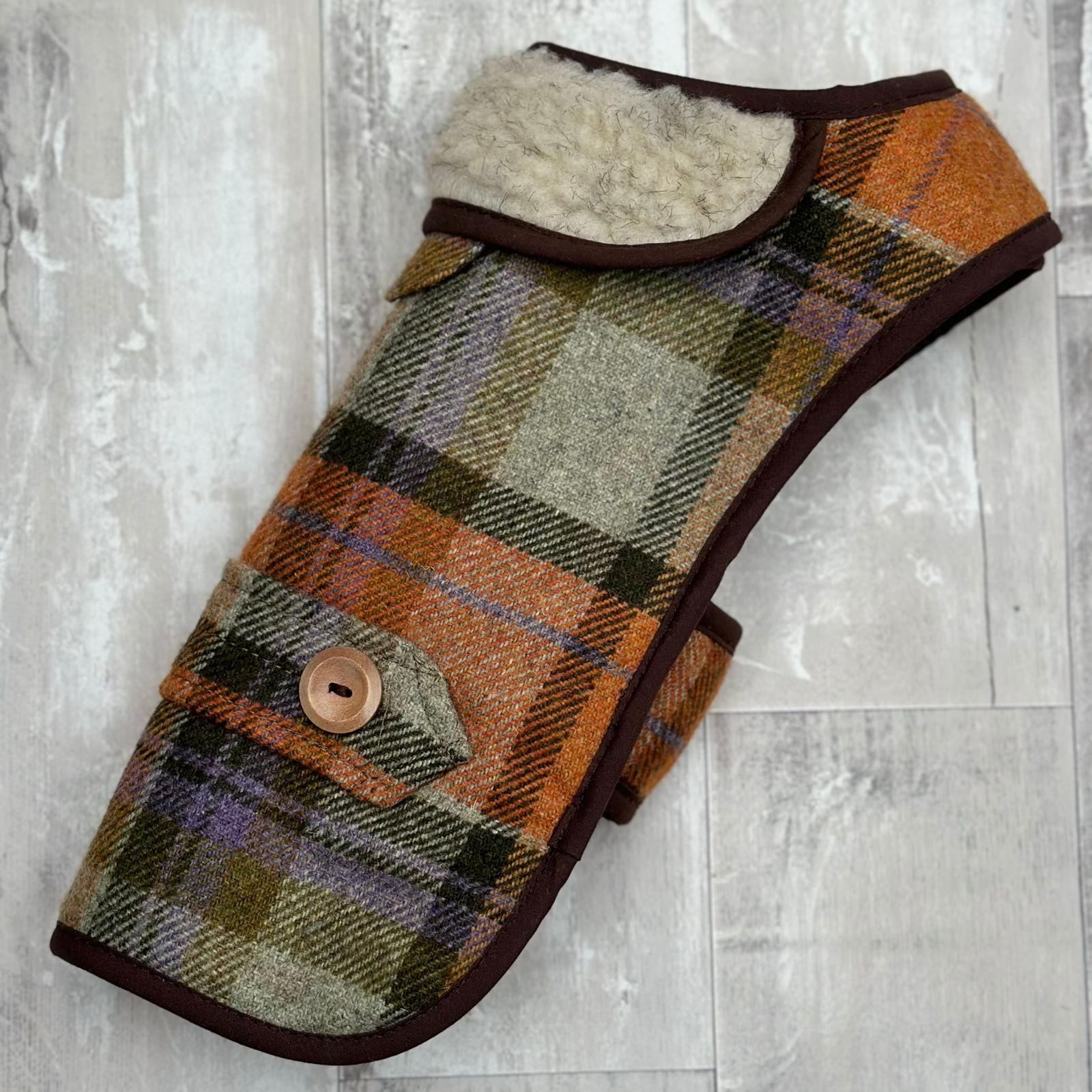 A classic countryside look with a rich, earthy twist. This stunning Orchard Check Earthbound jacket features warm autumnal hues of orange, green, brown, and even a hint of purple, creating a stylish yet practical coat for your four-legged friend.