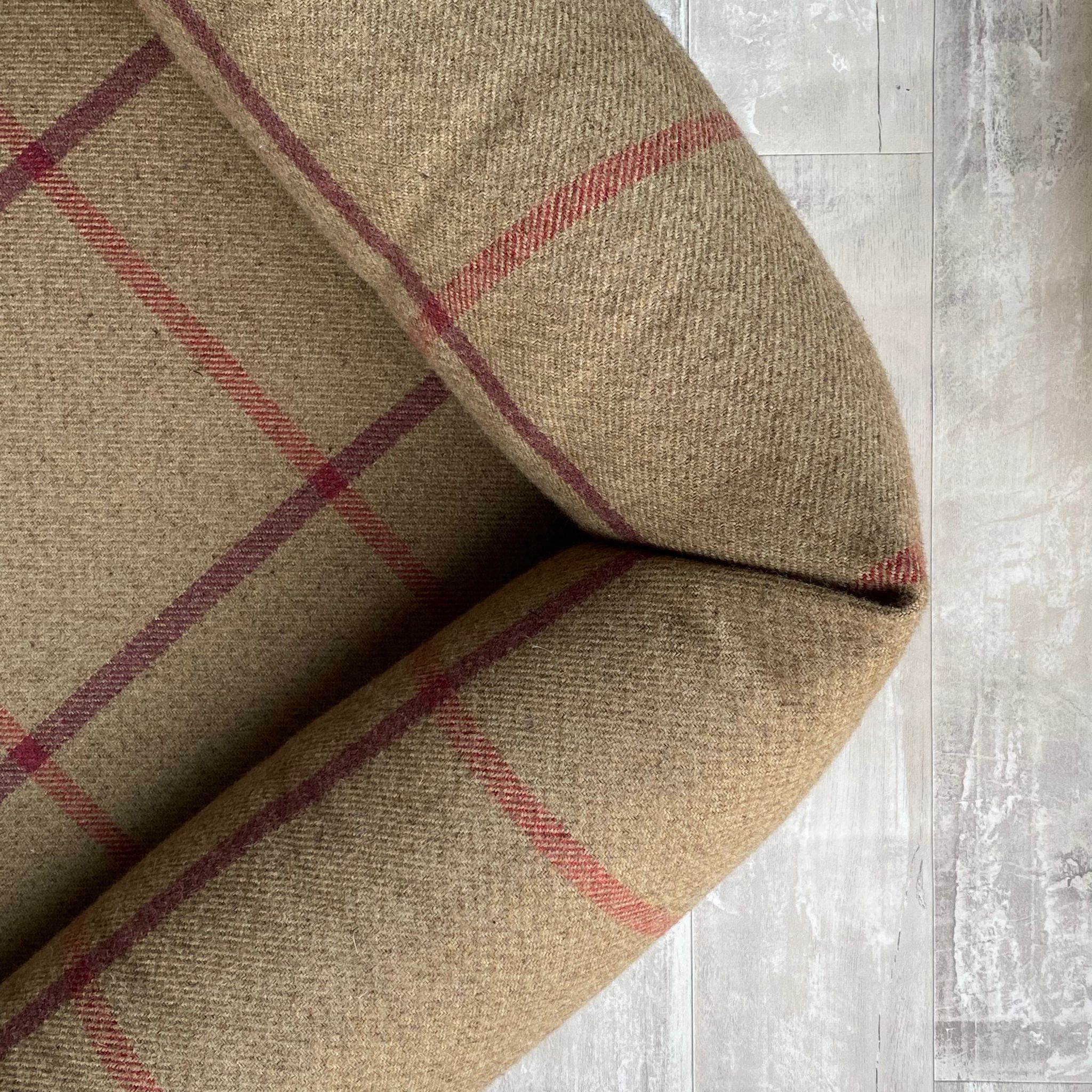 - Dyrham – A warm tan with a bold orange fine-line check.