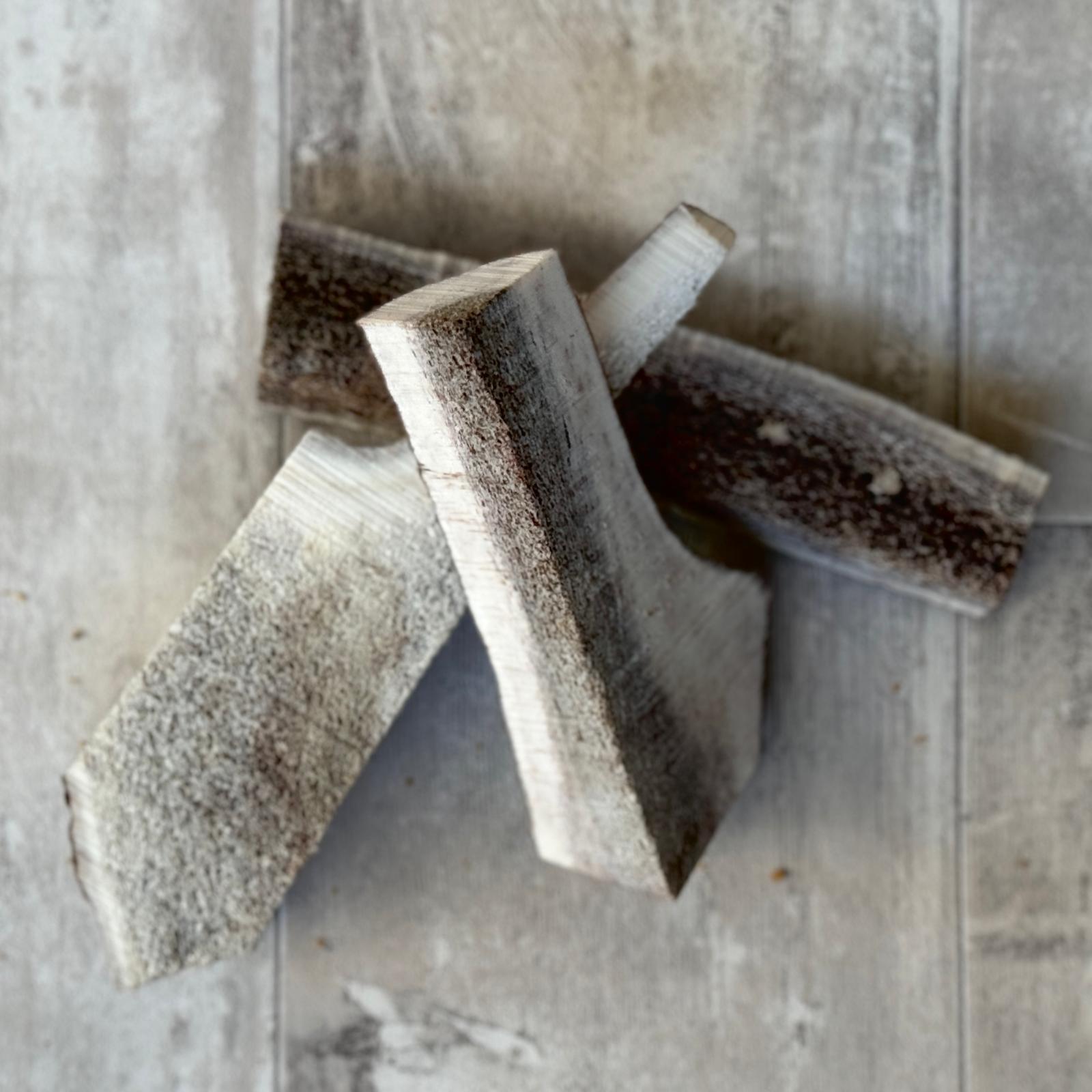 100% natural, our shed deer antlers make healthy and long-lasting chews. They are also low in fat, provide minerals and nutrients, such as calcium and phosphorus, and help to clean teeth. These are split right down the middle to expose all of the yummy marrow. Better for dogs new to antlers, puppies and smaller dogs give one a try. Remember though antler chewing should be supervised and take an antler away before it gets to be choking size.