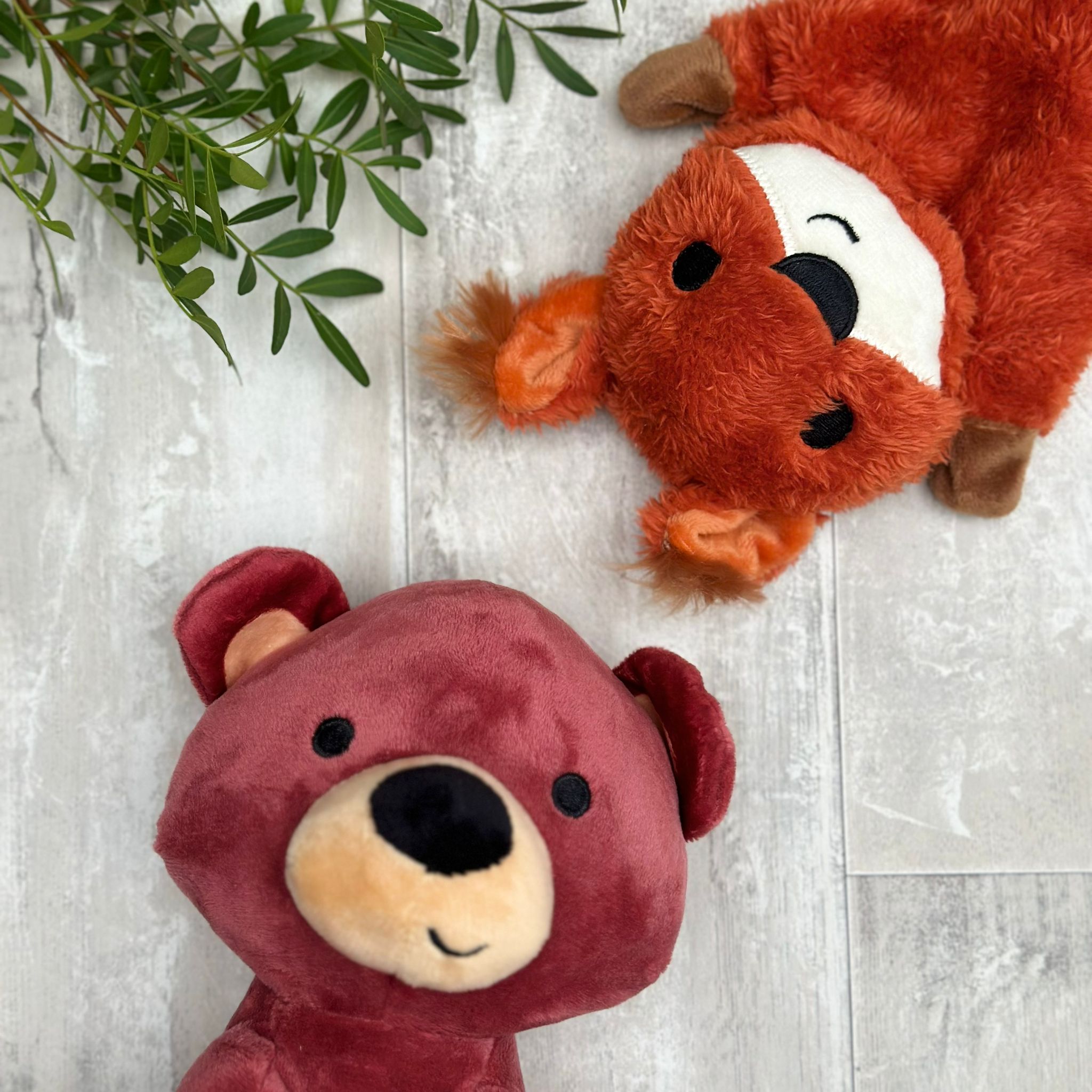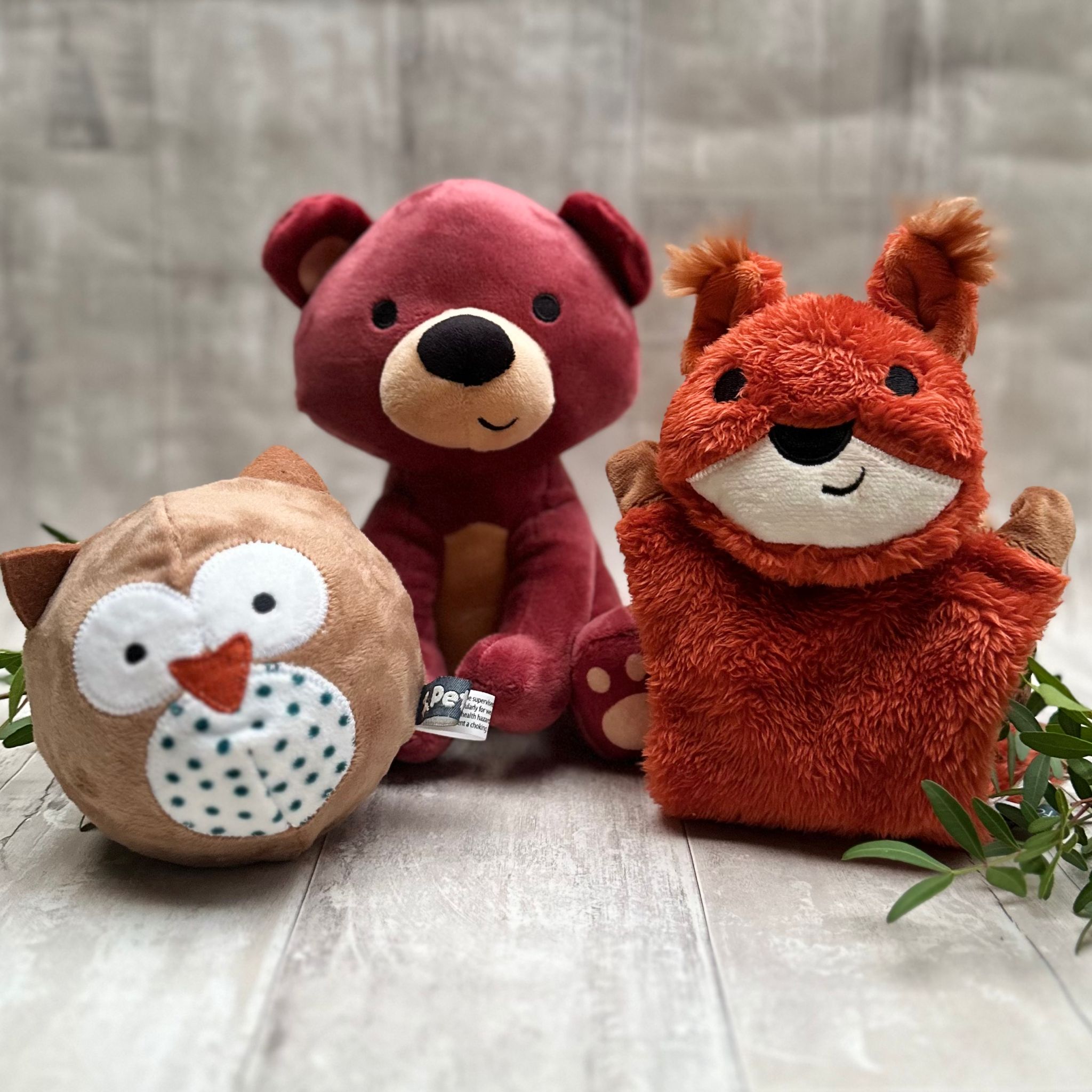 The merry band of woodland folk, each of them has a special characteristic. Bear is a cuddly chap with the softest body imaginable, Owl is a plush covered ball with a squeak, Squirrel has a crinkle body rather than stuffing and is a good size for carrying about in your mouth. – they are a cute mixture of textures and are sure to be your dogs best pals. Buy them individually or save by taking the group together.